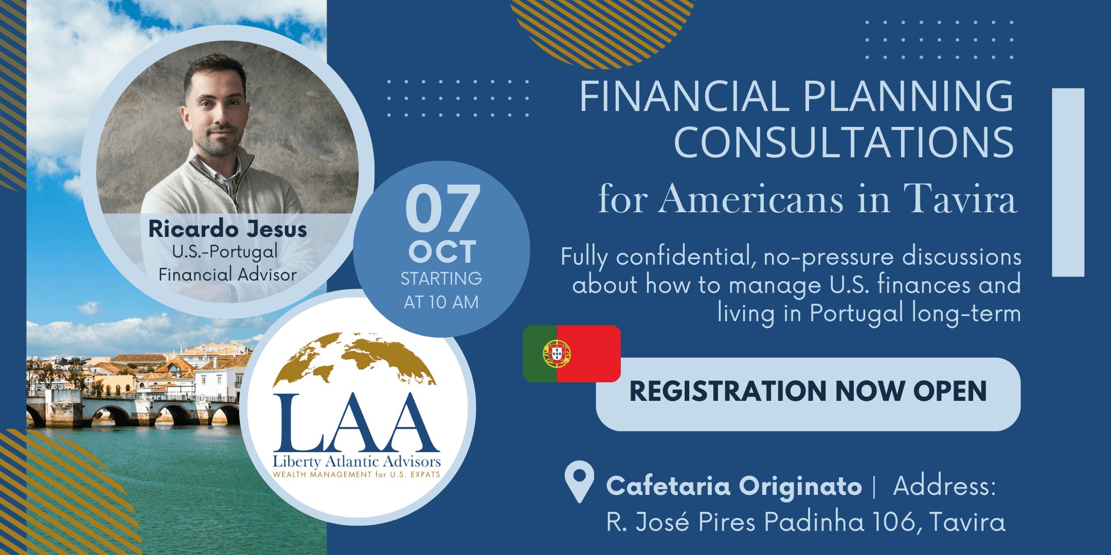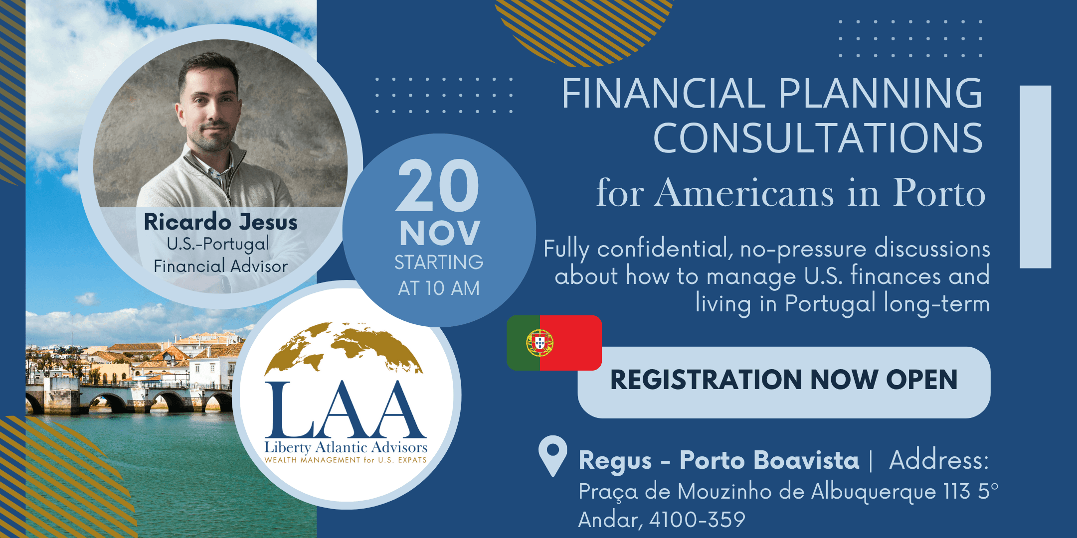 Please review this page for a list of upcoming in-person and virtual events that are team at Liberty Atlantic Advisors is participating in. For any questions or to book an immediate consultation, please email info@libertyatlantic.com.
